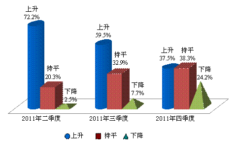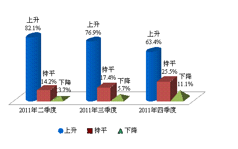 上海财经大学应用统计研究中心对2011年第四季度上海财经大学上海市消费者信心指数的调查结果显示,消费者对未来物价继续上涨的预期正在逐步下降。