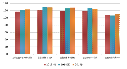 上海市社会经济指数系列课题组总负责人、上海财经大学应用统计研究中心主任徐国祥教授和常宁副教授分析指出,今年以来,在国家简政放权、增强社会经济活力、鼓励市场创新等政策影响下,规模以上企业的增加值和利润均呈现弱势反弹,提升了企业家群体对市场销售的信心。虽然前三季度我国GDP增速略有放缓,但产业结构调整稳步推进,转型升级势头良好,因此,企业家群体对实体经济未来的发展也持较为乐观的看法。