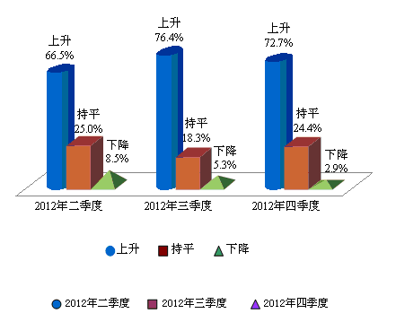 上海财经大学应用统计研究中心对2012年第四季度上海财经大学上海市消费者信心指数的调查结果显示,消费者对未来物价继续上涨的预期正在逐步下降。