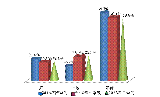 在本季度的调查中,33.7%的受访者认为房地产市场调控的政策有效,环比略下降了0.6点,比去年同期提高了8.9点;39.6%的消费者对该项工作的评价投了不满意票,比上季度亦下降了0.6点,同比亦大幅下降了10.2点,本季度消费者对调控效果的满意度依然维持在较高的水平,总体来看基本与前两个季度相当。近期连续出台的刺激房地产市场发展的政策很大程度上降低了购房成本,增加了市场的流动性,所以虽然价格出现一定幅度的上涨,但消费者对政策的认可度较高,仍然有较多的消费者对政府房地产市场调控工作投了满意票。从全国的整体情况来看,目前房地产市场的需求主体是改善型需求,投机性需求在一定程度上有所减弱,市场尚未整体回暖,但上海作为一线城市仍然面临较大房价上涨压力,尤其是股市与房地产市场的联动效应在一线城市表现较为明显,因此如果下半年股市表现稳定,应警惕房价的大幅上涨。