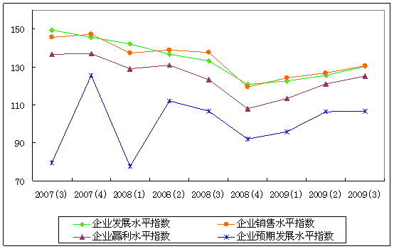 根据上海财经大学应用统计研究中心对上海市企业领导人或企业家的调查,2009年第三季度上海市企业家投资信心指数为123.16点,较上季度上升了3.19点,同比下降2.04点,仍然延续上个季度的回升态势。