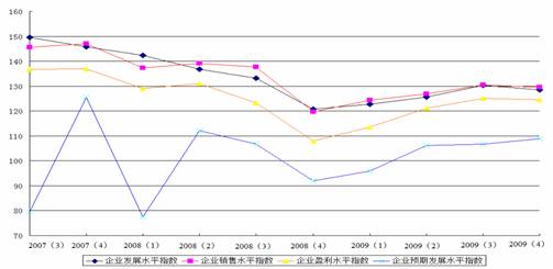 上海财经大学社会经济指数系列课题组总负责人、上海财经大学应用统计研究中心主任徐国祥教授分析指出,本季度主要经济指标增速稳步提高,经济运行继续企稳回升,积极向好的发展态势明显,经济社会保持平稳健康发展。民生状况稳步改善,但同时也存在外贸出口和港口货运仍然负增长等困难。随着一些国家政府和行业组织日益频繁对我国出口产品和企业设置各种贸易和投资壁垒,外需的急剧下降给企业的发展带来不小的压力,这反映在企业家对企业未来发展的预期空间上开始重新呈现谨慎的态度。因此,企业家的投资信心在发展水平、销售水平、盈利水平等各个方面都表现出略有下降。但总体看来,随着国家加大基础设施建设、产业升级改造等一系列的刺激经济发展政策的推出,反映企业未来发展前景的企业预期发展水平信心指数仍处上升趋势,说明企业界对未来发展仍然持有坚定的信心。