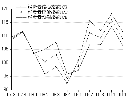 根据上海财经大学应用统计研究中心最新调查结果显示,2010年第一季度上海财经大学上海市消费者信心指数为109.0点,环比下降6.9点,同比上升10.2点。其中,消费者评价指数为106.5点,较上季度下降7.1点,同比上扬9.4点。消费者预期指数为111.6点,环比下降6.6点,同比上涨11.0点。各季度上海财经大学上海市消费者信心指数的具体指数值参见附表一。各项指数在2008年第四季度达到谷底后,经历了四个季度的回升,此后一直在高位波动,尤其是在上一季度达到了最高点,因此本季度各项指数出现的回落应该属于正常波动的调整,也是消费者在经济复苏过程中日趋理性的表现。