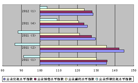 图3 上海财经大学2011年1季度至2012年1季度企业家投资信心指数四个分类指数变动情况图