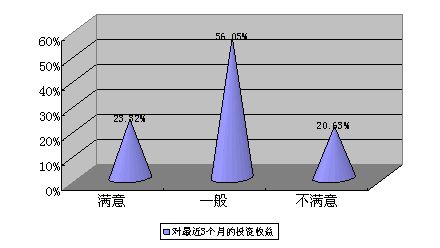 相比机构投资者而言,受访的个人投资者对投资收益表示了谨慎的乐观态度,满意指数为103.43点。本季度调查中,23.32%的个人投资者对过去3个月的投资收益表示满意,56.05%的个人投资者对过去3个月的投资收益表示一般满意,20.63%的个人投资者对过去3个月的投资收益表示不满意,如图8所示。