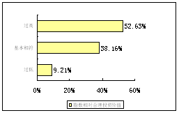 在对投资市场的信心和投资价值方面,个人投资者远比机构投资者悲观,这两项指数均处于消极区间,并且远低于中性值100。二季度调查中,有60%的个人投资者认为未来六个月大盘指数下跌30%的可能性很大,35%的个人投资者认为下跌的可能性介于10%-60%之间,只有4.5%的个人投资者认为可能性很小。而在关于目前的指数与合理的投资价值相符情况的调查中,过半数的个人投资者认为指数仍然高于真实价值,38%的受访者认为两者基本符合,只有不到10%的个人投资者认为目前的指数低于真实价值。如图10所示。
