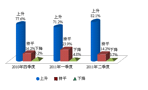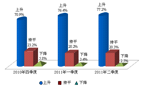 上海财经大学应用统计研究中心对2011年第二季度上海财经大学上海市消费者信心指数的调查结果显示,消费者对未来物价继续上涨的预期有回转上扬的趋势。