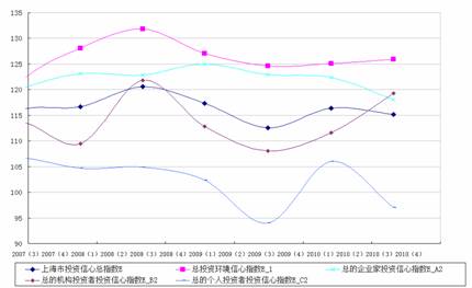 上海财经大学应用统计研究中心对上海市企业领导人或企业家、机构投资者和个人投资者的调查结果显示,2010年第四季度上海财经大学上海市投资者信心指数为115.2点,较上季度小幅下降了1.2点,同比也下降了5.4点,总体仍然偏向乐观。