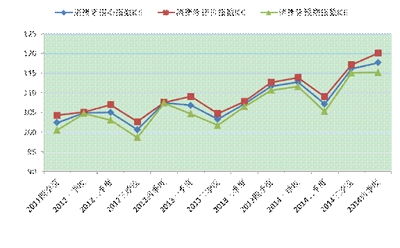 上海财经大学与中国金融信息中心联合举行“2014年年度和第四季度上海市社会经济指数系列”发布会。根据上海财经大学应用统计研究中心最新调查结果显示,2014年第四季度上海市消费者信心指数为117.6点,环比上升1.5点,同比上升6.0点。其中,消费者评价指数为120.1点,较上季度上升3.0点,同比上升7.4点。消费者预期指数为115.2点,环比上升0.1点,同比亦上升4.6点。各季度上海市消费者信心指数的具体指数值参见附表一。各项指数在本季度继续上升,总指数及多项分类指数均达到了调查以来的最高点,本年度第二季度形成了阶段性谷底。说明201 4年下半年以后消费者对于经济发展的信心逐步增强。纵观全年,2014年世界经济在美国经济复苏的引领下,呈现出见底企稳的向好迹象,而我国经济已逐步适应“新常态”,上海经济增速放缓,但总体平稳, 提升了本季度消费者对本市经济发展形势的信心。