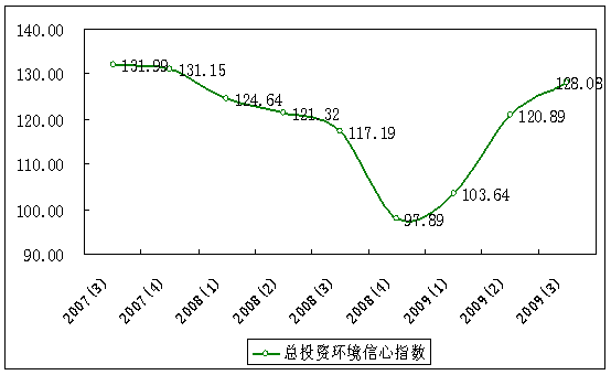 根据上海财经大学应用统计研究中心对上海市投资者的调查,2009年第三季度上海市投资环境信心指数为128.08点,在上季度上升的基础上继续上升了7.19点,同比上升10.88点,呈现较明显的乐观状态。具体见下图2。