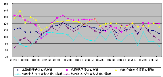 上海财经大学应用统计研究中心对上海市企业领导人或企业家、机构投资者和个人投资者的调查结果显示,2014年第二季度上海财经大学上海市投资者信心指数为104.64点,已连续三个季度回落,比一季度降低4.53点,同比持平,指数值仍在乐观区域,但投资者信心较前期有所回落。