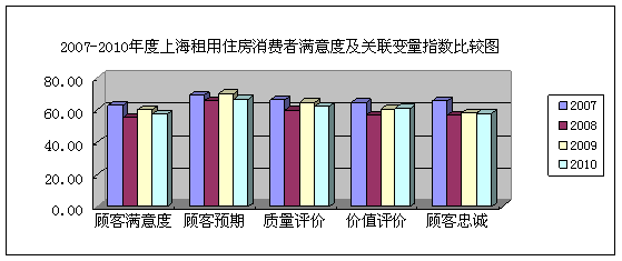 附图2 2007-2010年度上海租用住房消费者满意度及关联变量指数比较图