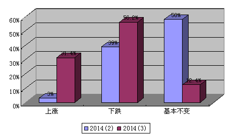 图5 2014年2季度与3季度机构投资者投资对未来六个月大盘走势的预期比较图