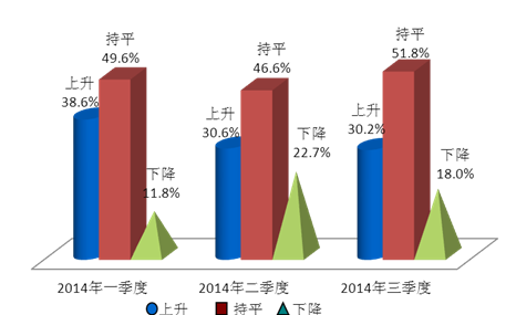上海财经大学应用统计研究中心对2014年第三季度上海市消费者信心指数的调查结果显示,与上期调查结果相比较,消费者对未来物价继续上涨预期略有回升,利率稳定预期增强。