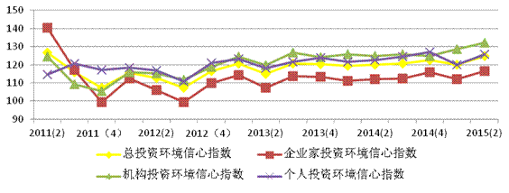 根据上海财经大学应用统计研究中心对上海市投资者的调查,2015年第二季度,上海市投资环境信心指数为124.84点,环比上升4.68点,同比上升4.92点。调查结果显示指数位于乐观区域,表明投资者整体对投资环境持较积极心态。