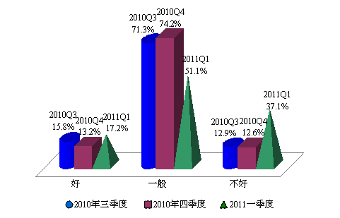 根据上海财经大学应用统计研究中心的最新调查结果显示,消费者对于购房的消极情绪略有缓解,2011年第一季度上海财经大学上海市消费者购房意愿指数为29.7点,环比微升0.9点,购房时机预期指数46.3点,环比上升7.3点,基本回复到上年第二季度的水平,反映了消费者对第三轮调控的期待,虽然楼市未现明显松动,但预期指数超过意愿指数16.6点,购房者对于楼市调控效果具有一定的向好预期。