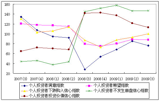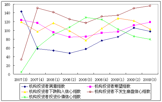 根据上海财经大学应用统计研究中心的调查,2009年第三季度上海市机构投资者信心指数为109.45点,较上季度下降了4.27点,上海市个人投资者信心指数为104.7点,较上季度下降了2.11点,两者均持续处于中性值100点的上方,说明投资者的信心仍然维持乐观。