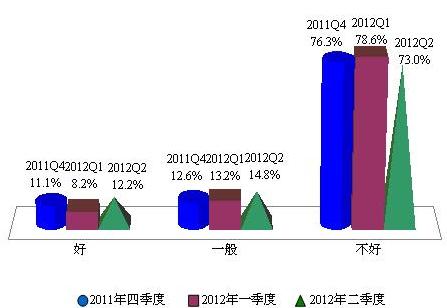 根据上海财经大学应用统计研究中心最新调查结果显示,本季度消费者对于购房的热情大幅升温,2012年第二季度上海市消费者买房意愿指数为39.2点,环比上涨高达9.6点,尽管该指数值远低于中性值100点,但已是2010年以来的最高点;购房时机预期指数48.9点,环比上升1.8点,同比上升幅度较大,为10.6点,也在逐步走出2011年第二季度的低点。反映了本轮房地产调控已有所成效,部分刚性需求急于释放,同时消费者对调控的持续性有一定的向好预期。