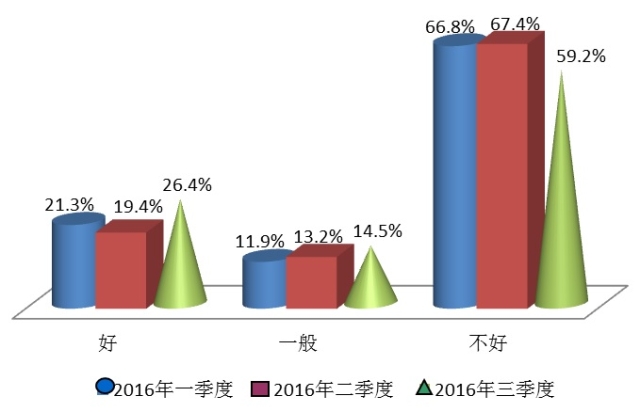 在本季度的调查中,19.4%的受访者认为房地产市场调控的政策有效,环比下降5.1点,比去年同期大幅下降了12.3点;而随着房价的快速上涨,59.0%的消费者对该项工作的评价投了不满意票,环比和同比分别上升了9.2点和16.7点,说明本季度消费者对房地产市场状态的不满意度有所提高,已接近近三年来的最高点。一方面越来愈多的消费者购房愿望增强,另一方面越来越多的消费者认为房地产调控不利,看似相悖的现象构成了当下的市场状态。本轮上海等一线城市的房价上涨幅度和速度已经引起了各方关注,也引发了各种观点。