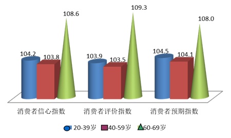 上海社会调查研究中心上财分中心、上海财经大学应用统计研究中心徐国祥教授和和统计与数据科学学院吴纯杰教授、崔畅副教授分析指出,在分年龄段的调查中,老年消费者在三项指数中得分最高,分别为108.6点、109.3点和108.0点;而40—59岁年龄段消费者的各项指数垫底,信心指数、评价指数和预期指数分别为103.8点、103.5点和104.1点;20—39岁年龄组的各项指数分别为104.2点、103.9点和104.5点。各个年龄段的各项分类指数环比大多下降,但老年消费者和青年消费者的购买类指数环比均出现上涨,说明这两个群体表现出较为积极的消费心态;而中年群体的购买类指数则大幅下降,中年群体对未来的各种不确定性更为敏感,因此对消费持有更为谨慎的态度。综上,不同收入群体和不同年龄段的消费者对上海市经济的整体评价和预期以及各项分类指数都呈现出了不同的走向,应针对各自的特点予以有针对性的关注。