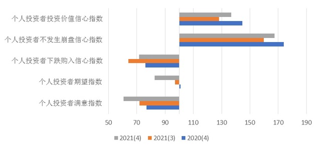 根据上海社会调查研究中心上财分中心和上海财经大学应用统计研究中心最新调查结果显示,2021年第四季度上海市个人投资者信心指数为103.88点,环比持平,同比下降10.57点。