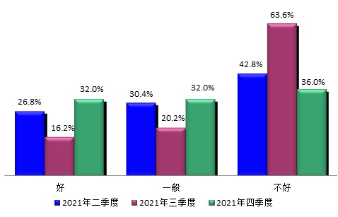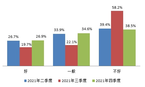 目前上海市房地产市场状态较为稳定,同时消费者对当前的市场形势也能够接受,本季度调查结果显示32.0%的消费者认为当前是购房的“好”时机,环比上升了15.8个百分点,同比上升了8.4个百分点,认为时机“不好”的则为36.0%,环比大幅下降27.6个百分点,同比减少11.5个百分点。本季度消费者对当前购房时机的认可度较上个季度大幅提高,认为时机“好”的消费者占比达到了三年来的最高,同时选择时机“不好”的消费者大幅减少。2021年上海市楼市的总体呈现出量涨价跌的态势,说明一直以来上海市坚持建立和实施房地产长效机制已现成效,消费者对房地产的刚性需求大量释放,造成了本季度购房意愿指数的大幅上升。