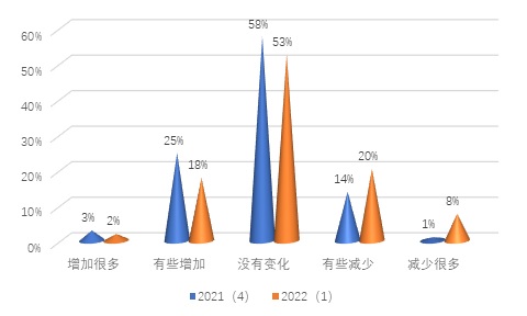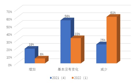 图6 2021年4季度与2022年1季度机构投资者对投资额度变化的看法图