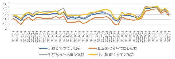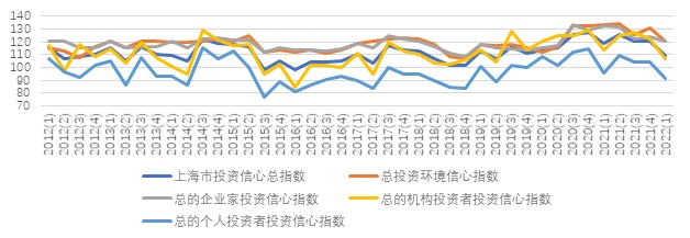 图1 上海市投资者信心指数2012年第1季度至2022年第1季度核心指数运行情况图