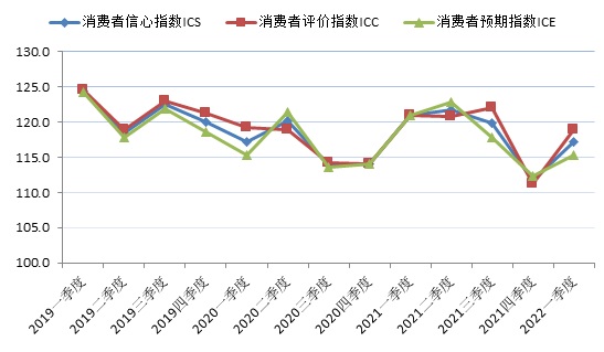 二、2022年第一季度上海市消费者信心指数为117.1点,环比上升5.4点,同比下降3.8点,指数处于乐观区域较高点位。