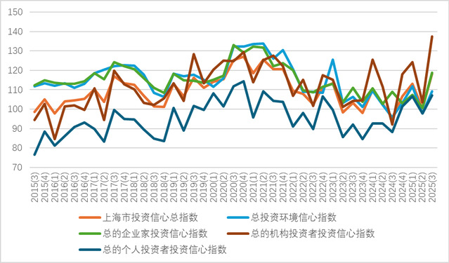 根据本期对上海市企业家、机构投资者和个人投资者的最新调查结果显示,2025年第三季度上海财经大学上海市投资者信心指数为120.95点,环比上升20.58点,同比上升25.35点,表明上海市投资者情绪较前期更为乐观。