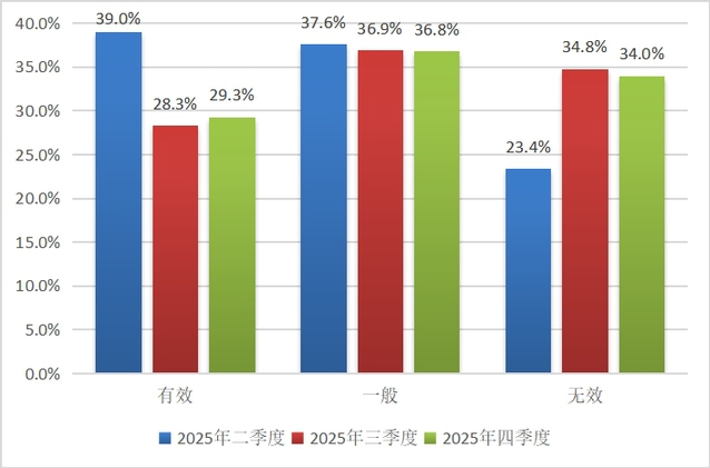 在本季度的调查中,29.3%的受访者认为房地产市场调控的政策有效,环比增加了1.0个百分点;同时,34.0%的消费者对该项工作的评价投了不满意票,比上季度略减少了0.8个百分点,可见本季度消费者对调控政策的评价主要是由“无效”向“有效”稍加调整,这与消费购房预期指数和购房评价指数的对比一致,说明消费者对调控效果的满意度有所提高的同时,对楼市的未来走势也有向好的预期。