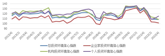 根据上海社会调查研究中心上财分中心和上海财经大学应用统计研究中心对上海市投资者的调查,2022年第四季度上海市投资环境信心指数为108.49点,环比持平,同比大幅下降21.83点。