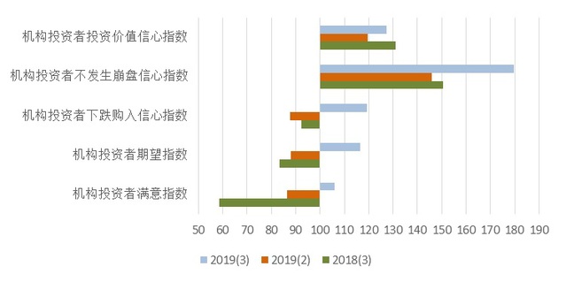 (三)2019年第三季度上海财经大学上海市机构投资者信心指数为128.25点,比二季度大幅上升23.87点,同比上升26.08点。指数处于乐观区域。