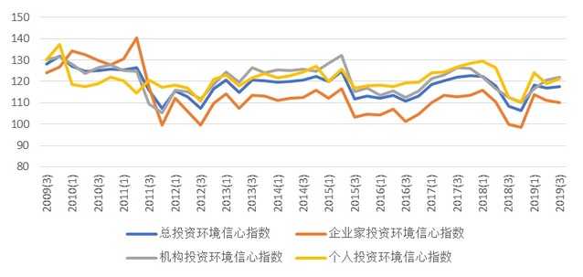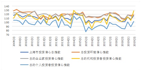 图3 上海财经大学2019年第3季度至2019年第3季度上海市投资环境信心指数图