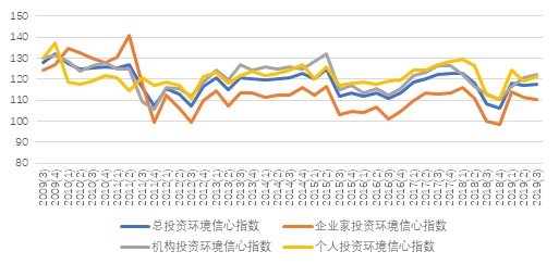 上海社会调查研究中心上财分中心主任、上海财经大学应用统计研究中心主任徐国祥教授和统计与管理学院常宁教授分析指出,第三季度,在“六稳”政策的影响下,我国经济的下行风险得得以有效抑制,中美贸易摩擦有所缓和,出口市场好于预期;经济基本面的稳定提振了投资者心态。与此同时,在科创板上市的带动下,A股市场热情和活跃程度显著提升,投资者对投资环境的预期向好。总体上,本季度上海市投资者环境信心指数稳定,投资者心态相对乐观。