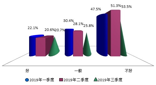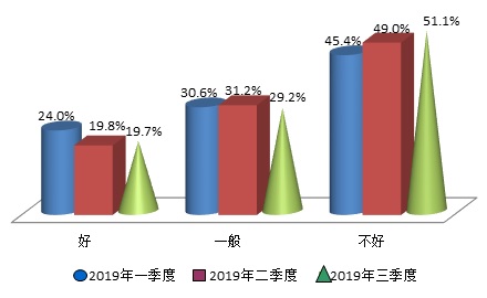 本季度调查结果显示有20.7%的消费者认为当前是购房的“好”时机,环比基本持平,同比上涨6.3个百分点;认为时机“不好”的消费者比例则为53.5%,环比增加了2.2个百分点,但同比大幅下降了8.6个百分点;而选择“一般”的消费者环比下降了2.3个百分点,同比上涨了2.3个百分点,占比为25.8%。可见本季度部分消费者对于购房时机的评价由“一般”向“不好”进行了调整,但幅度不大,本季度是房地产市场的传统旺季,但市场活跃度总体不高,消费者的购房意愿基本平稳。