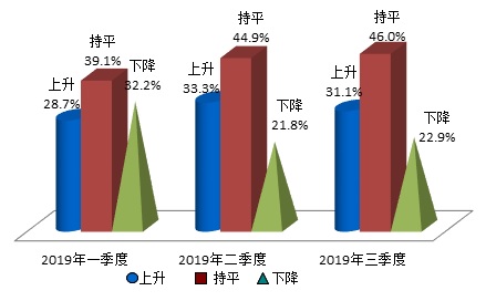 根据上海社会调查研究中心上财分中心和上海财经大学应用统计研究中心最新调查结果显示,2019年第三季度与上期调查结果相比较,消费者对未来物价继续上涨的预期有所下降。