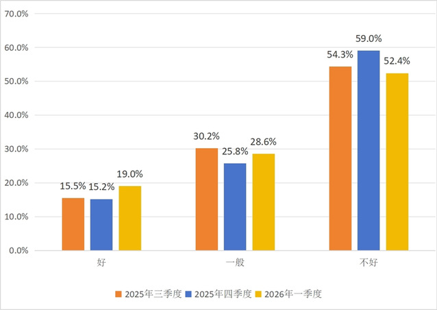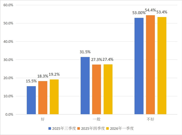 调查结果显示,2026年第一季度上海市消费者对当前购房时机评价、未来购房时机判断均出现小幅改善,市场悲观情绪有所松动;房地产调控效果评价环比略降。