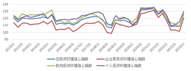 图2 上海财经大学2013年1季度至2023年1季度上海市投资环境信心指数图
