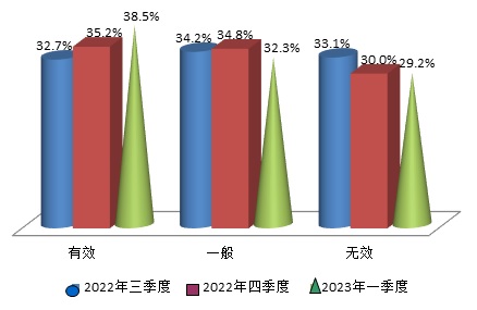 在本季度的调查中,38.5%的受访者认为房地产市场调控的政策有效,环比增加了3.3个百分点,相比去年同期仍然下降了13.0个百分点;而29.2%的消费者对该项工作的评价投了不满意票,与上个季度基本持平,略降0.8个百分点,同比增加8.8个百分点,可见本季度消费者对调控效果的满意度高于上一个季度,但还是低于去年同期的水平。经济在复苏的过程中,部分消费者的住房需求得以释放,但市场总体价格保持平稳,使得消费者对调控政策的信心有所增强。